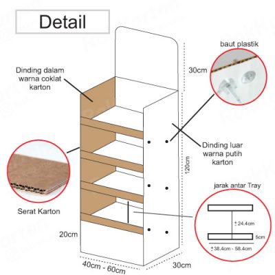 Bagian Dinding Belakang (Hadap tembok dan Bawah Tray Warna Coklat karton /Tidak dilapis Stiker